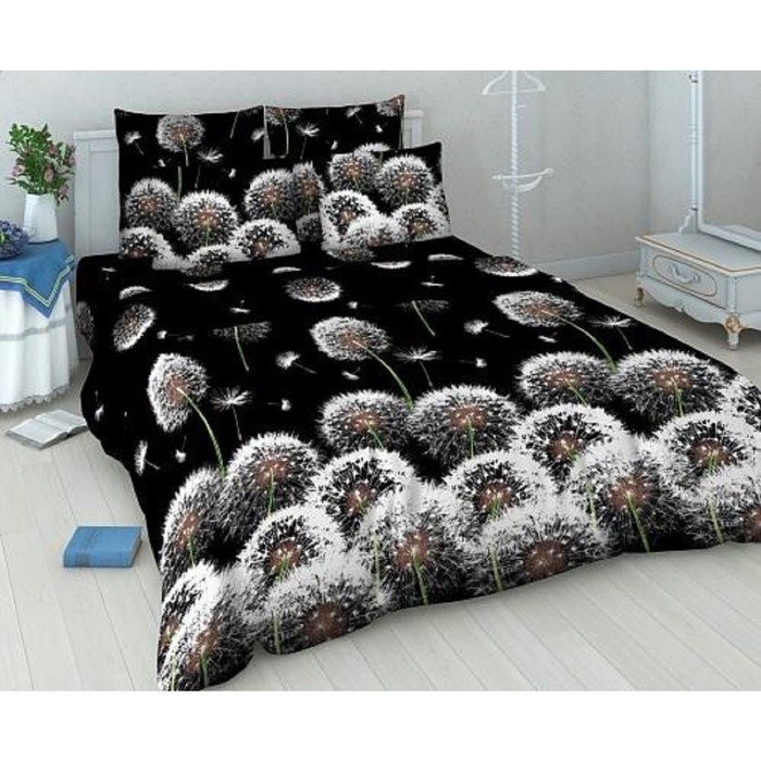 Постельное бельё евро «Василиса» Белый одуванчик 200×215 см, 200×220 см, 70×70 см — 2 шт.