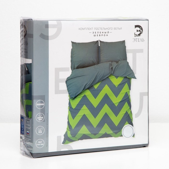 Постельное бельё Этель дуэт «Зелёный шеврон» 143×215- 2 шт, 240*220, 70×70−2 шт