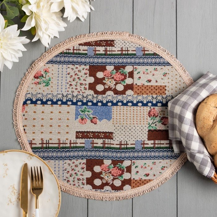 Салфетка на стол Этель «Пэчворк» с бахромой d40 ± 2 см