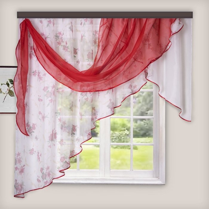 Комплект штор для кухни Иллюзия 300×150 см, цв. красный, левая, пэ 100%