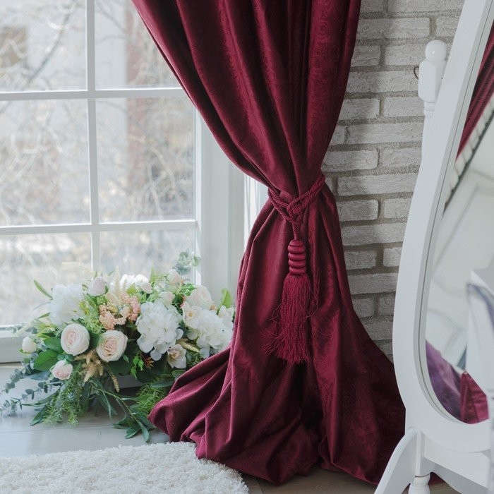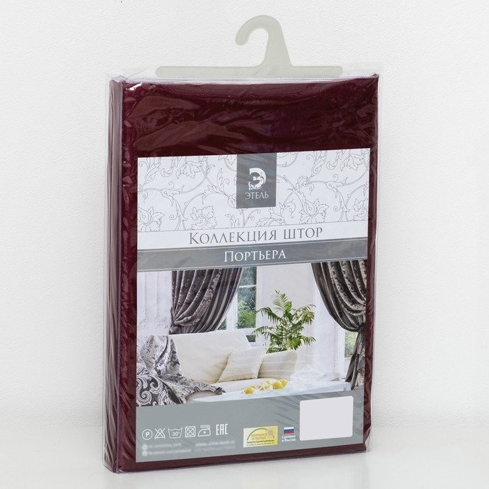 Штора портьерная «Этель» 170×270 см Валенсия Вишнёвый,100% п/э