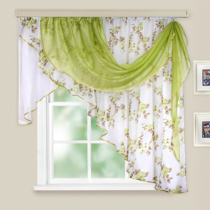 Комплект штор для кухни «Иллюзия», 300×150 см, цвет зелёный, принт микс