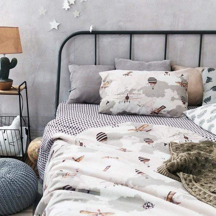 Постельное бельё Этель «Карта» 1,5 сп. 145×210 см, 150×210 см, 50×70 ± 3 см — 1 шт., 100% хлопок, бязь