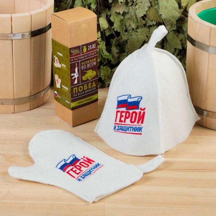Набор для бани «Герою и защитнику!» шапка, рукавица