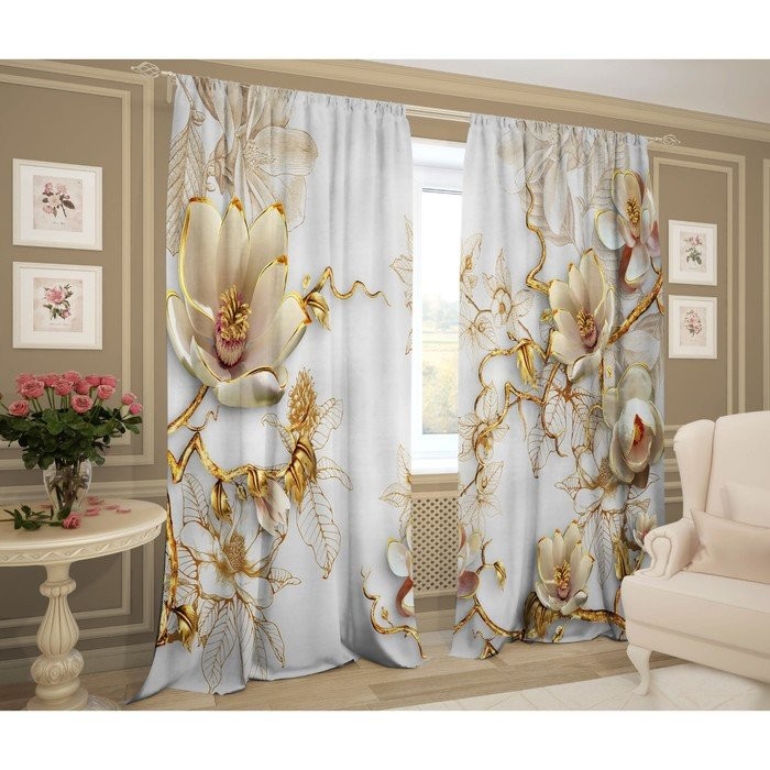 Комплект штор Фарфоровый сервиз 147×267 +/- 3см 2шт, габардин, п/э