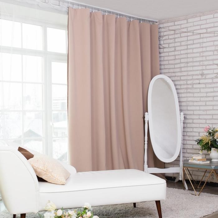 Штора портьерная Этель 250×265 см, двусторонний блэкаут, цвет бежевый, пл. 240 г/м2