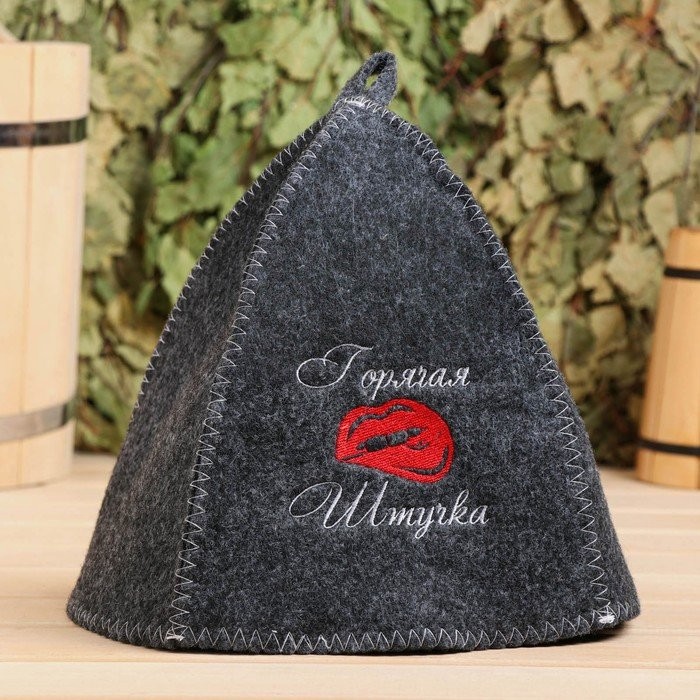 Шапка для бани с вышивкой «Горячая штучка», серая