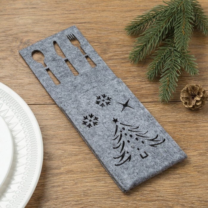 Конверт для столовых приборов Доляна «Новый год», цвет серый, 25×8, 5 см