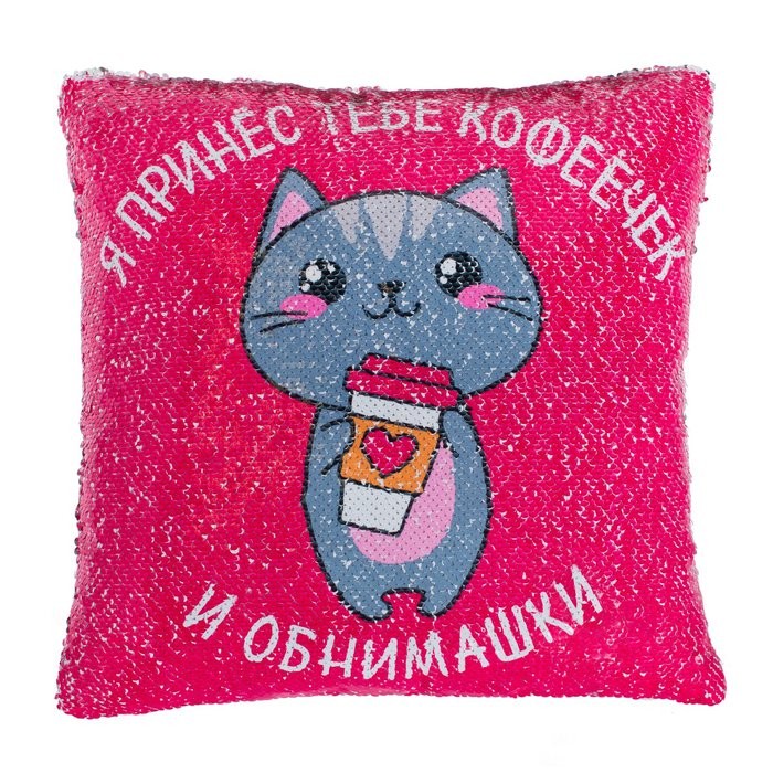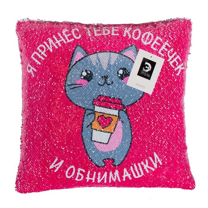 Наволочка с пайетками «Этель» Обнимашки, 40×40 см, велюр, 100% п/э