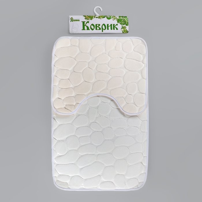 Набор ковриков для ванны и туалета Доляна «Галька», 2 шт: 39×50, 50×80 см, цвет белый