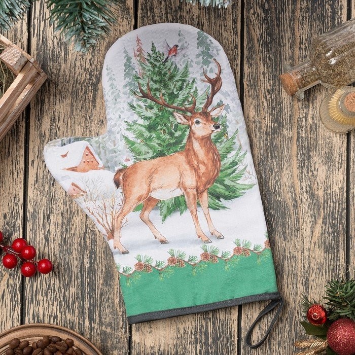 Варежка-прихватка «Новогодний лес» 20х28см, саржа, 100% х/л, ватин 250г/м2