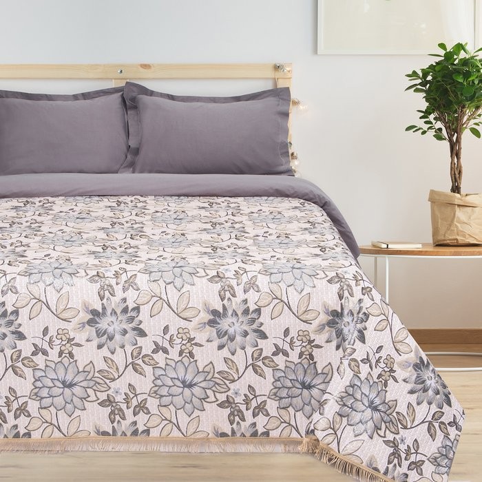 Покрывало гобеленовое Этель «Роскошь» с бахромой, серебряный, 140х200см, п/э 80%, хл 20% (450 г/м2)