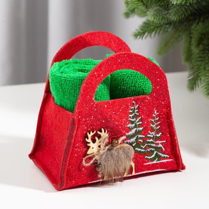 Набор полотенец в корзинке Этель «Новый Год» 30×30 см-2 шт