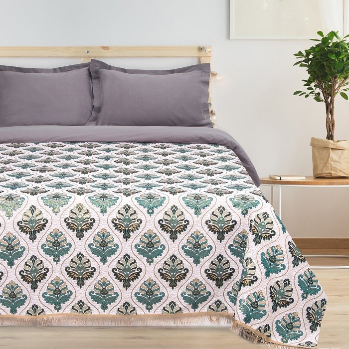 Покрывало гобеленовое Этель «Барокко» с бахромой, бирюзовый, 240х200см, п/э 80%, хл 20% (450 г/м2)