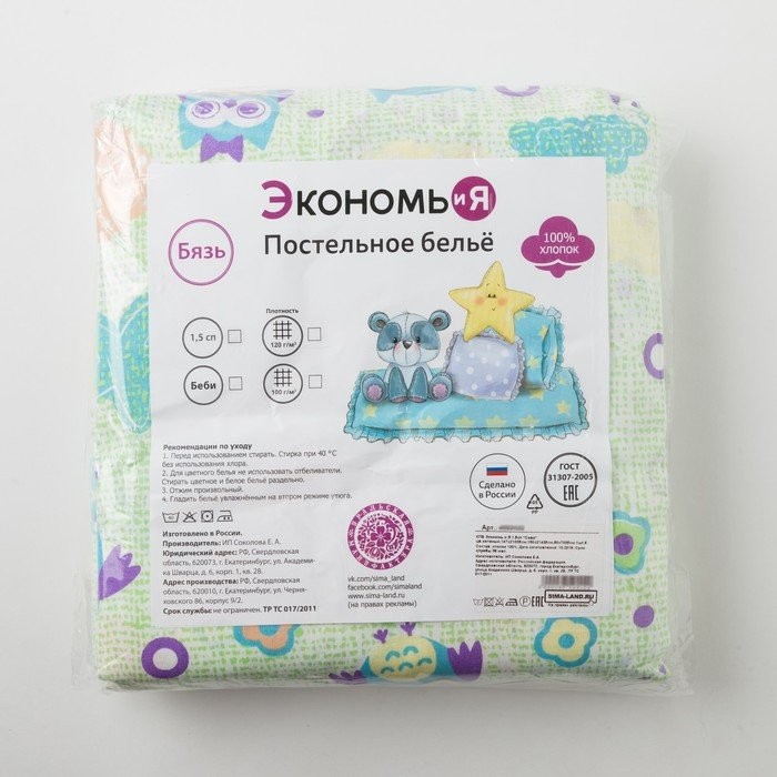 Детское постельное бельё Экономь и Я «Сова» 1.5сп, цвет зелёный, 147×210±5см, 150×214±5см, 70×70±5см — 1шт
