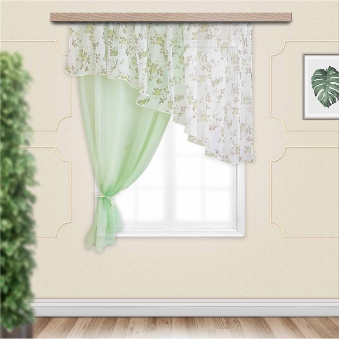 Комплект штор для кухни Византия 280×160 см, цв. св.зеленый левая, пэ 100%