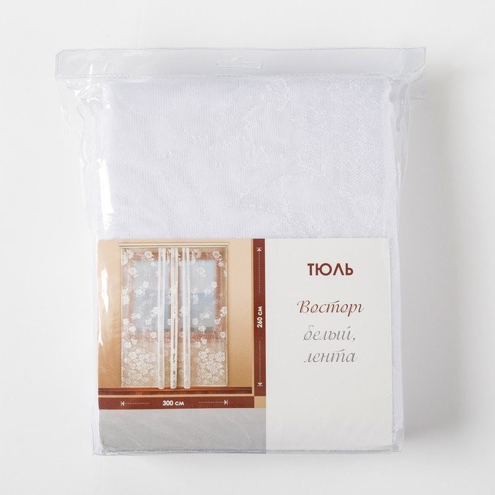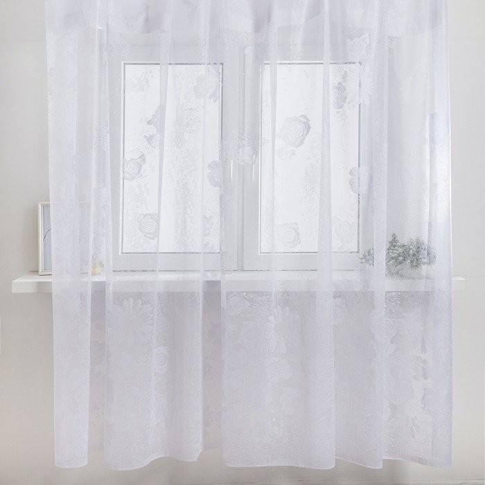 Тюль со шторной лентой 260×300 см, белый, пэ 100%