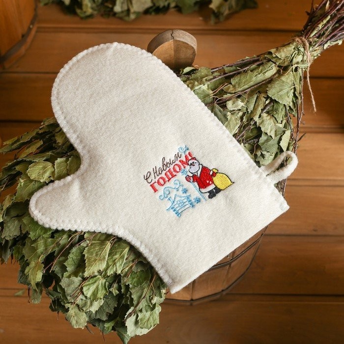 Рукавица для бани с вышивкой «С Новым Годом»