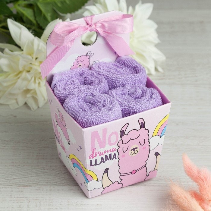 Набор махровых полотенец «No probLama» 30×30 см-4шт, хлопок, 340 г/м2