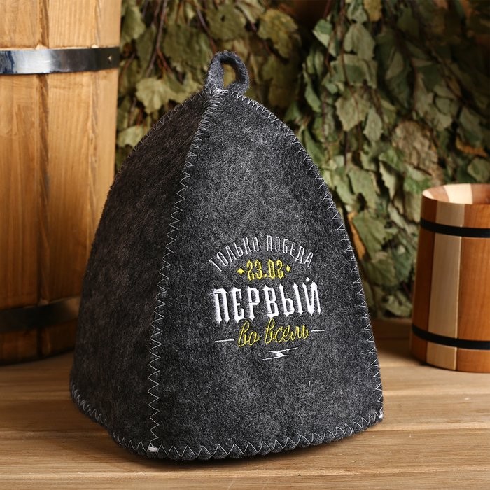 Шапка для бани с вышивкой «Первый во всем 23.02»