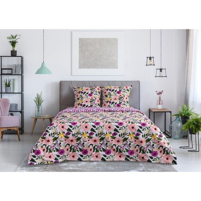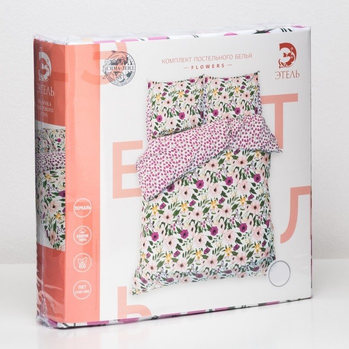 Постельное бельё Этель 2сп Flowers 175×215 см, 200×220 см, 70×70 см-2шт, 100% хлопок, перкаль