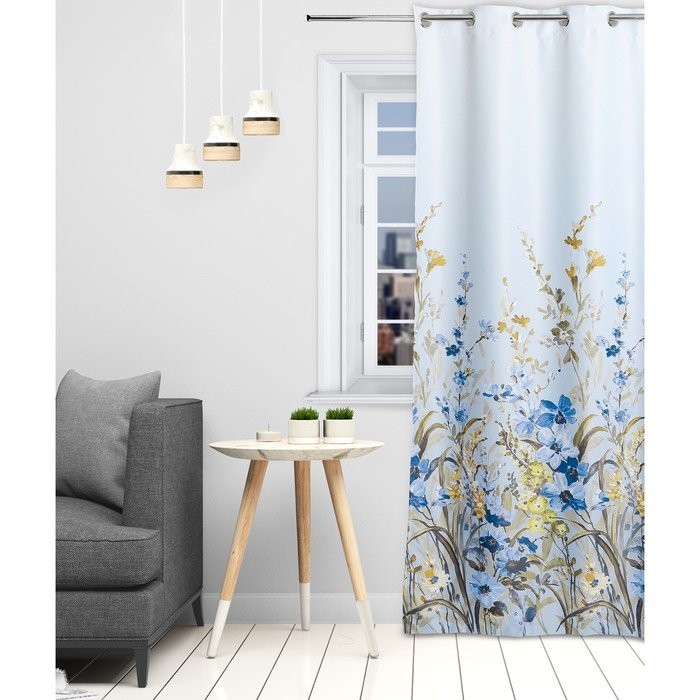 Штора портьерная Этель «Акварель» цв.синий, 145*250 см, на люверсах, пл. 210 г/м2, 100 п/э