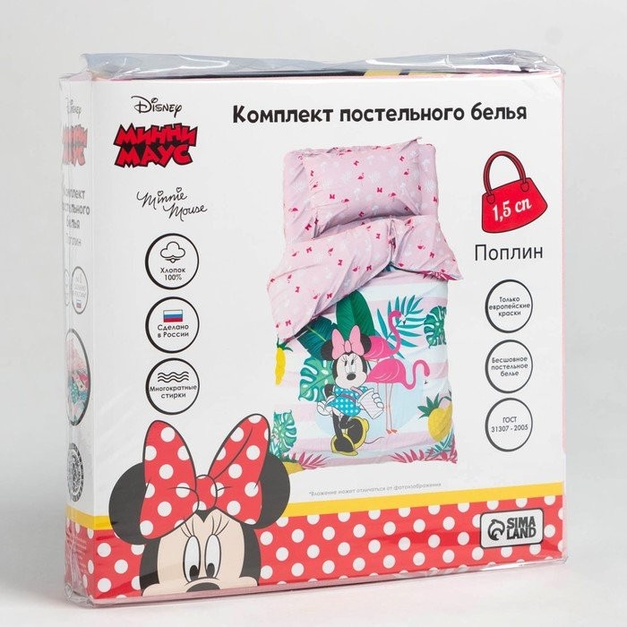 Постельное бельё 1,5 сп «Spring Palms», Минни Маус, 143*215 см, 150*214 см, 50*70 см -1 шт, поплин