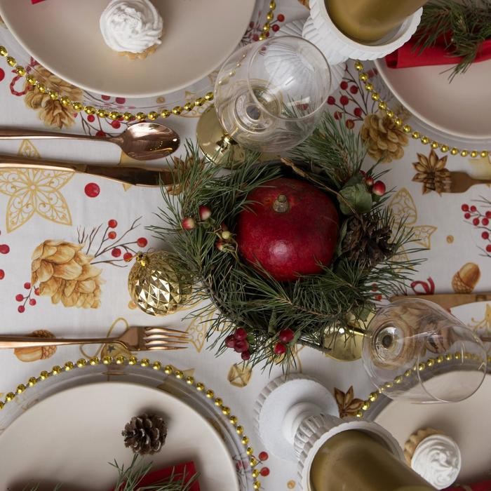 Скатерть «Этель» Golden Christmas 149х220см с ГМВО, 100%хл, 190г/м2