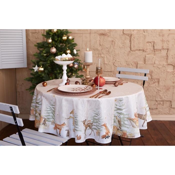 Скатерть «Этель» Christmas forest d=220 +/- 3см с ГМВО, 100%хл, саржа 190 гр/м2