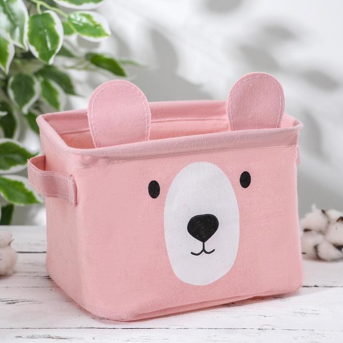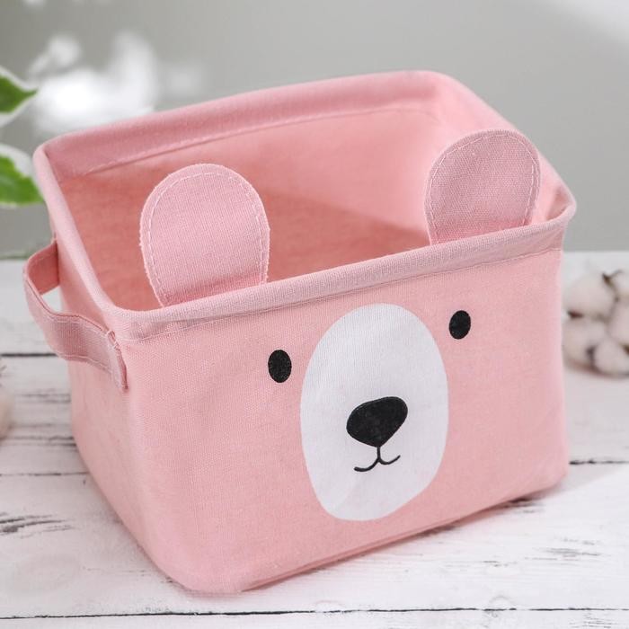 Корзина для хранения с ручками «Мишка», 20×16×14 см, цвет розовый