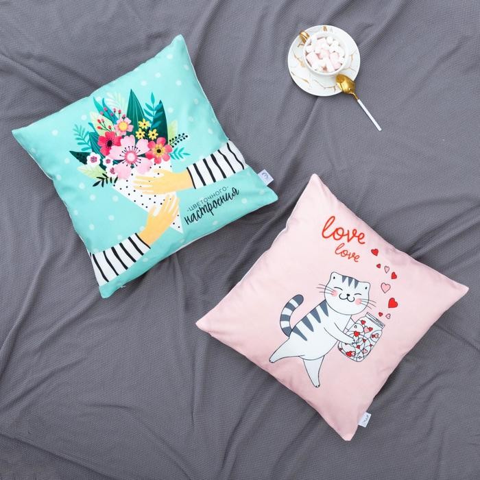 Наволочка Этель «Цветочное настроение» 40×40 см, 100% п/э, велюр