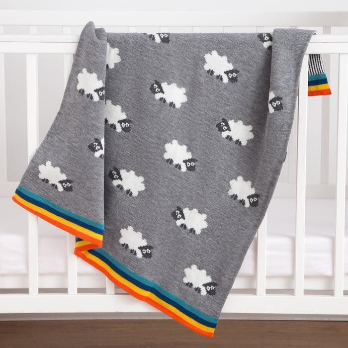 Плед вязаный Крошка Я «Овечки» цв. серый, 80*100 см, 100% хлопок