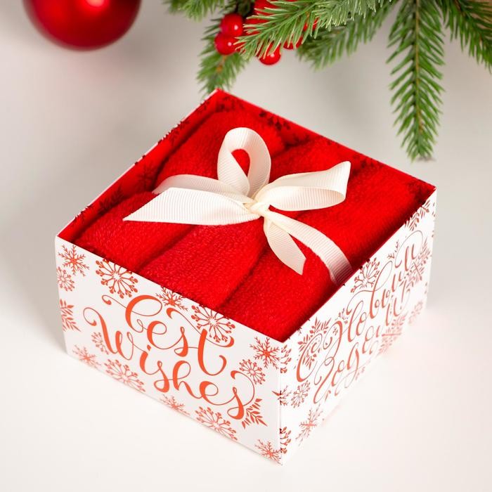 Набор махровых полотенец «С Новым годом» 30×30 см — 3 шт, хлопок 340гр/м2