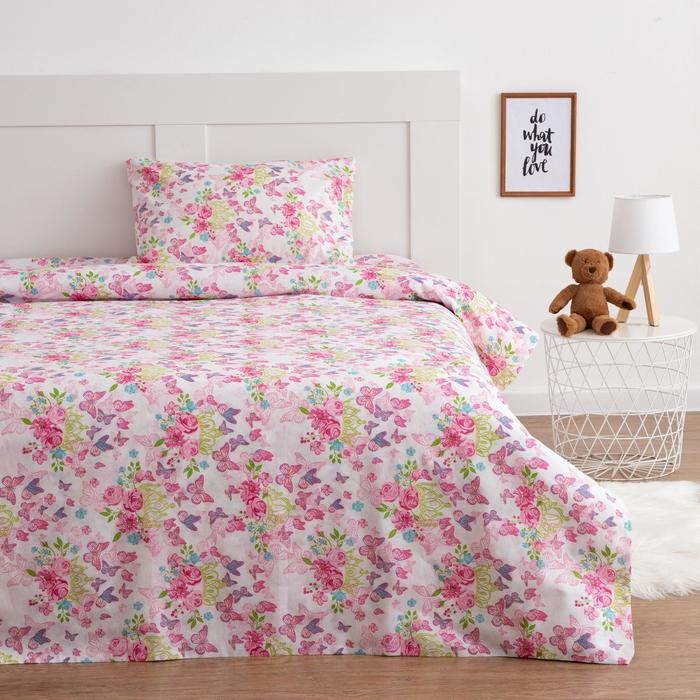 Постельное бельё 1,5 сп Экономь и Я «Нежные цветочки» 145×210, 150×210, 50×70 см-1 шт