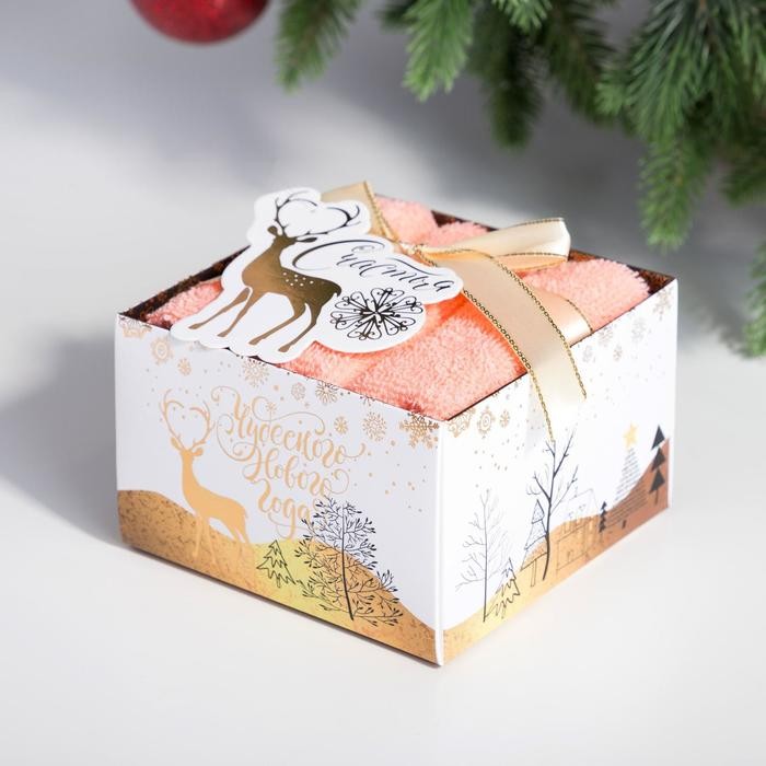 Набор махровых полотенец «Чудесного нового года» 30×30 см — 3 шт, хлопок 340гр/м2