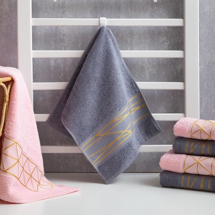 Полотенце махровое «Полосы» серый 30×70 см, 100% хл, 370гр/м2
