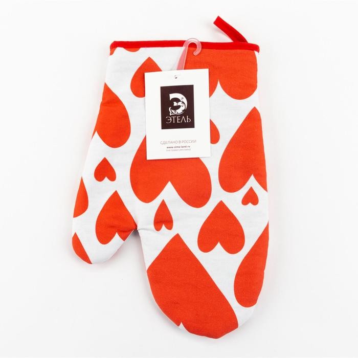 Варежка-прихватка «Этель» Red hearts 20х27см,100% х/л, ватин 250г/м2 (двухсторонняя)