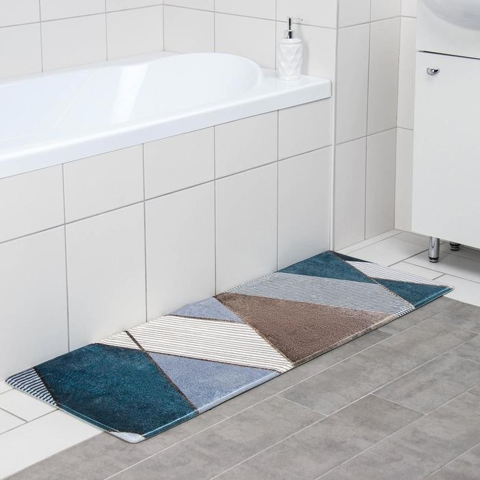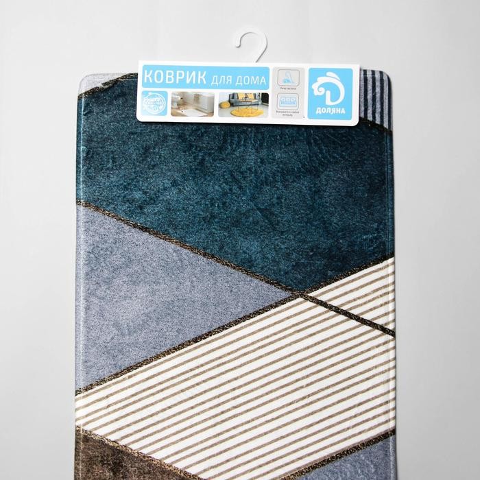 Коврик Доляна «Мелаж», 45×120 см, цвет сине-бежевый