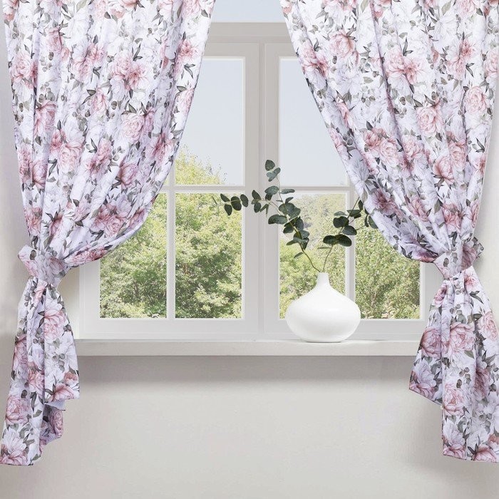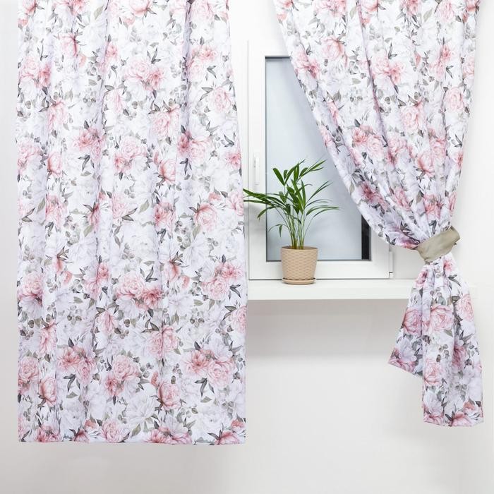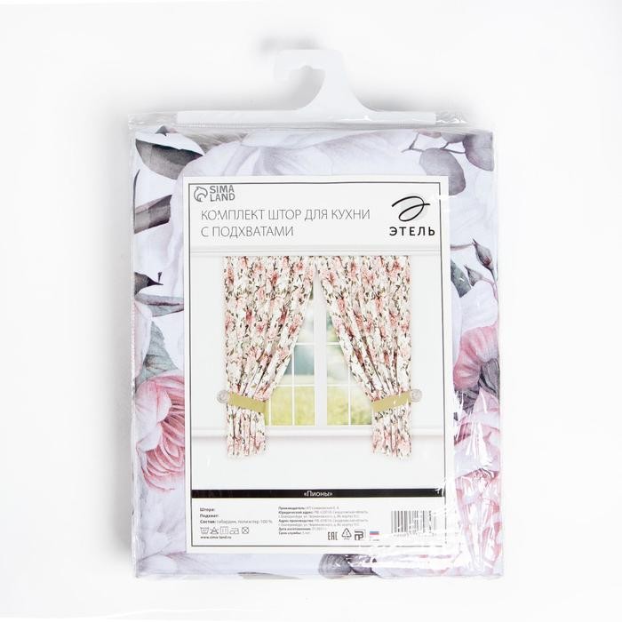Комплект штор для кухни с подхватами Этель «Пионы» 145х180см-2 шт., 100% п/э