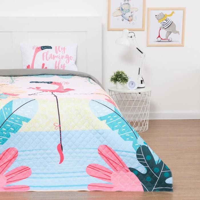 Покрывало детское и наволочка Этель 1,5 сп «Flamingo time», 145×210 см, 40×60 см, микрофибра