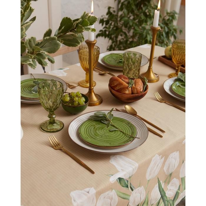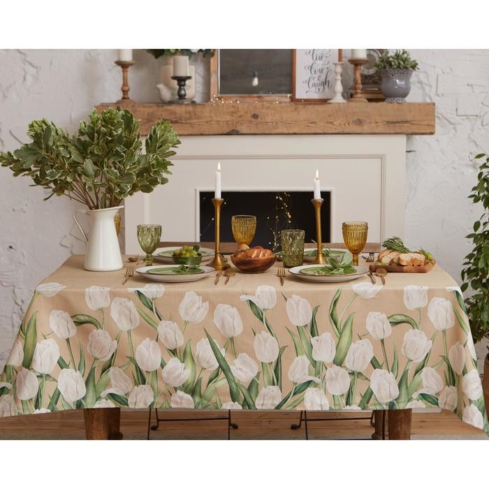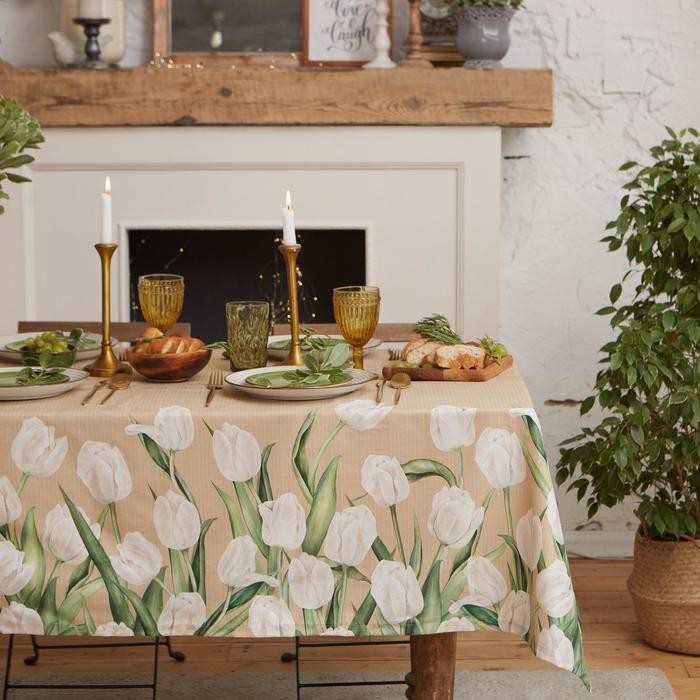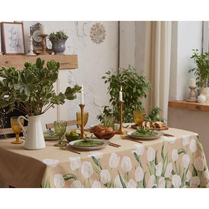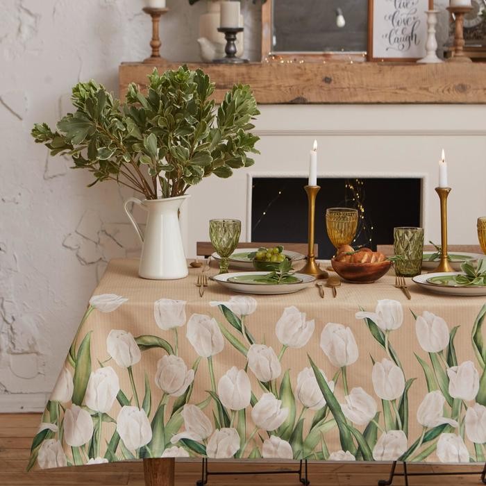 Скатерть «Этель» Белые тюльпаны 149х110см, 100% хл, саржа 190 г/м2