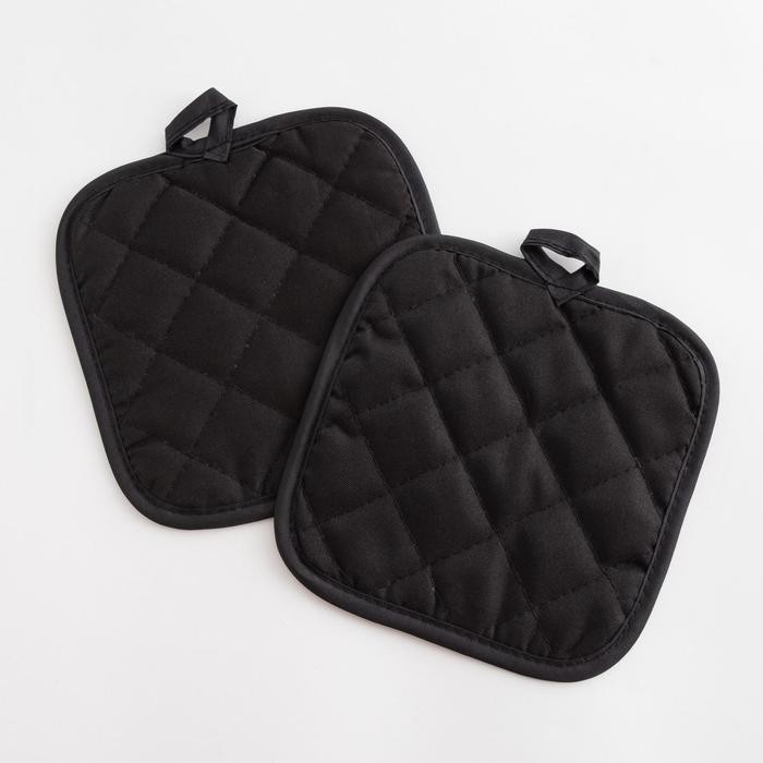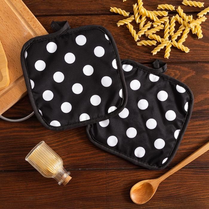 Кухонный набор Доляна «Горох» цв.черный, прихватка 17*17 см — 2 шт,100% п/э