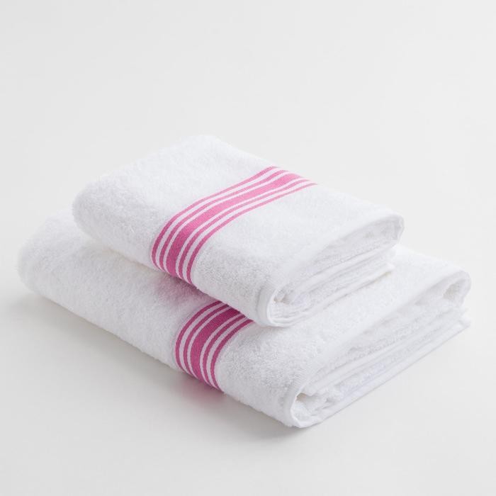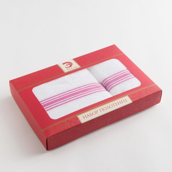 Набор полотенец Этель «Полосы» 2 шт (70×130, 50×90 см) белый/розовый, 100% хлопок, 360г/м² ²