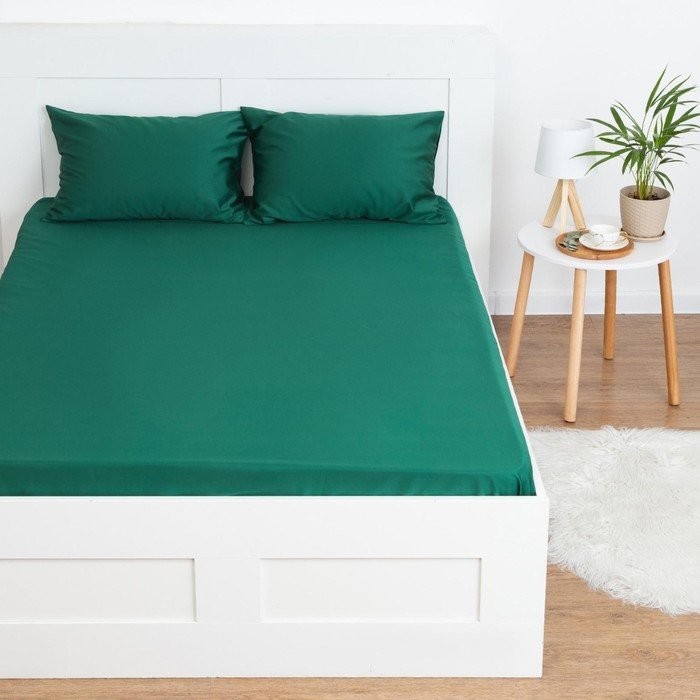 Простыня на резинке Этель 160*200*25 см, цв.изумрудный, 100% хлопок, мако-сатин, 125 г/м²