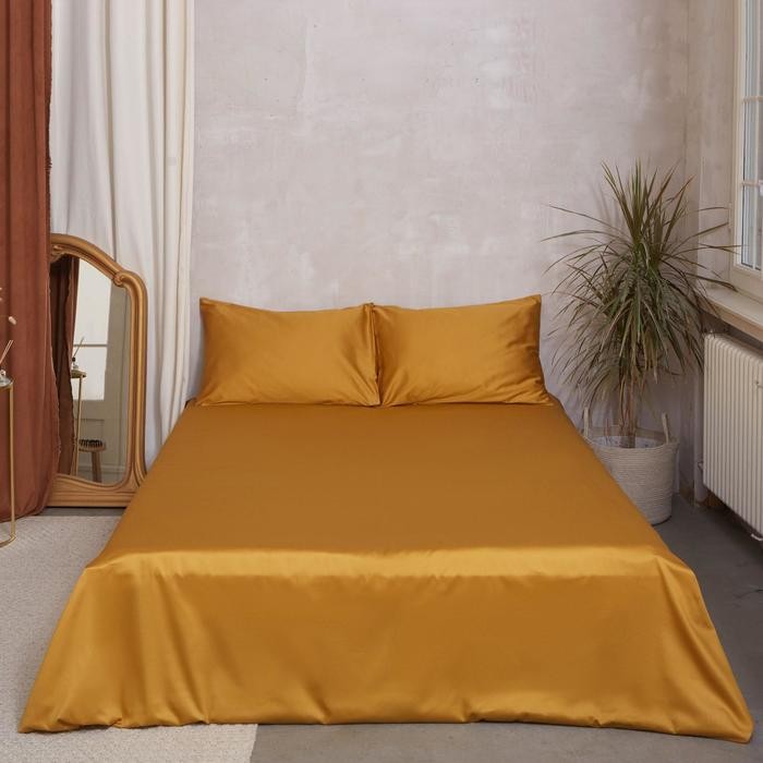 Простыня Этель 220*235 см, цв.горчичный, 100% хлопок, мако-сатин, 125 г/м²