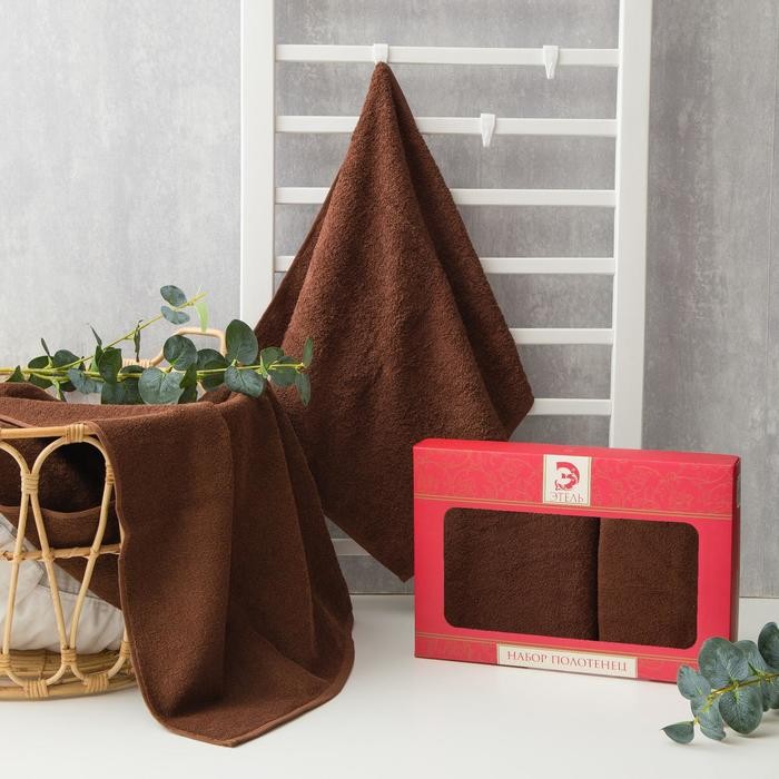 Набор полотенец Этель «Для любимой» 2 шт  (70×130, 50×90 см) шоколад, 100% хлопок, 360г/м² ²