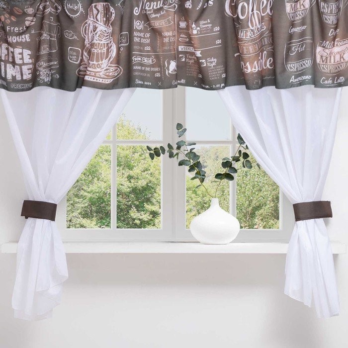 Тип тюли: Готовый, Короткий, С рисунком
