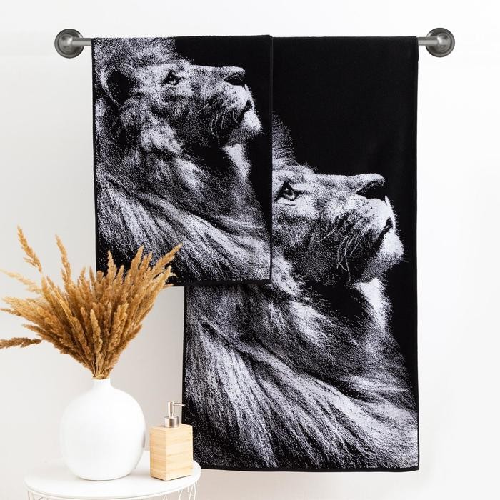Полотенце махровое Этель ЧБ «Лев» 50×90 см