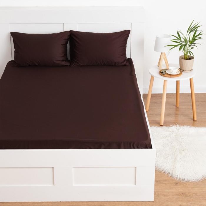 Простыня на резинке Этель 200*220*25 см, цв.темно-коричневый, 100% хлопок, мако-сатин, 125 г/м² 5373